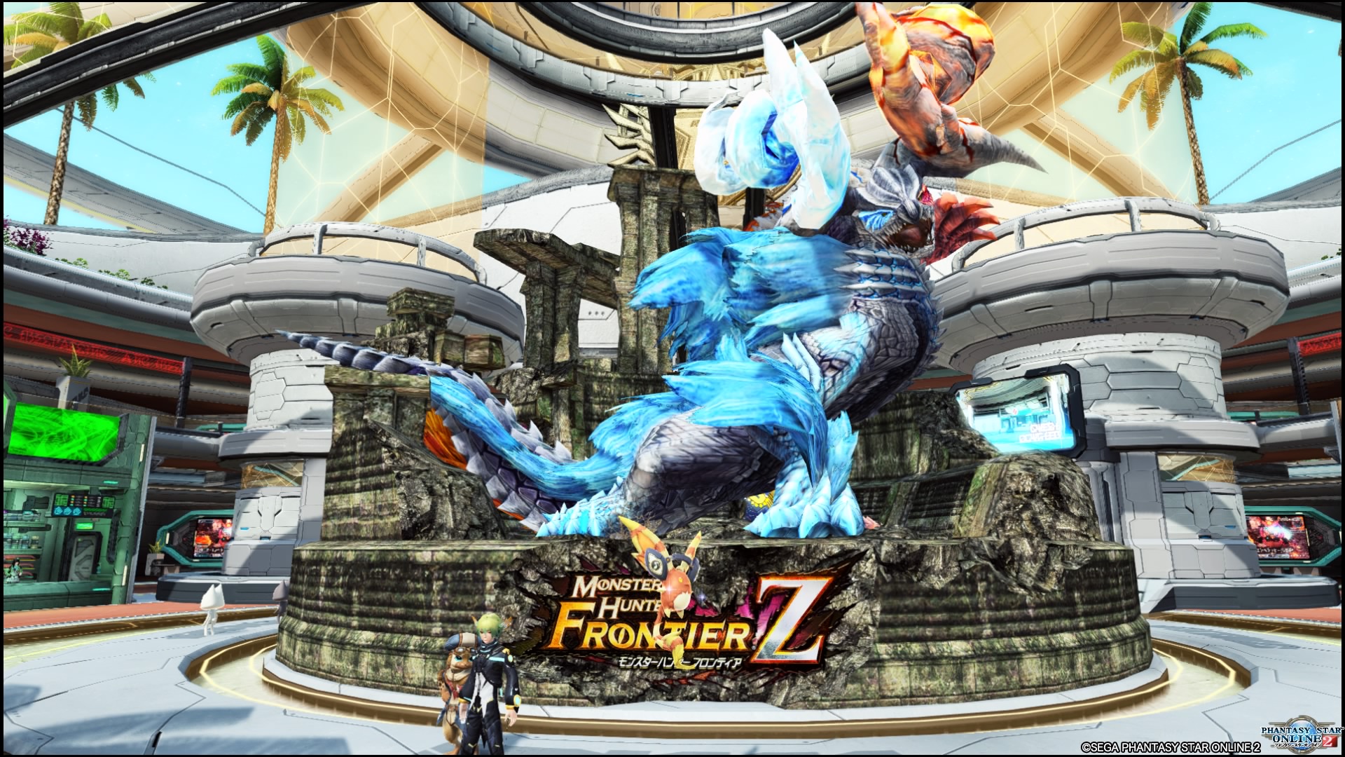 今回のコラボは、MHFZのコスチュームとか武器の迷彩の実装だったり、パートニャーが来てたりとか色々ありますが、やはり目玉はボスエネミー「灼零龍エルゼリオン」の実装でしょうか。