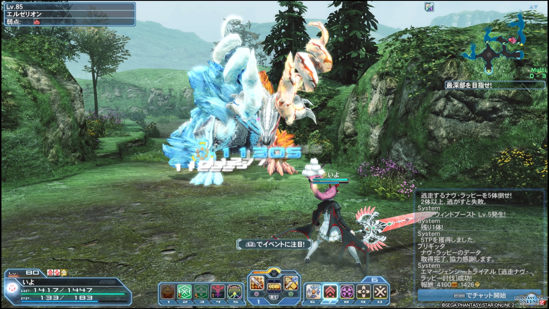 何だかんだ初見ソロで撃破できましたが、フリーフィールドのエルゼリオンは討伐じゃなくて逃げちゃうみたいです。